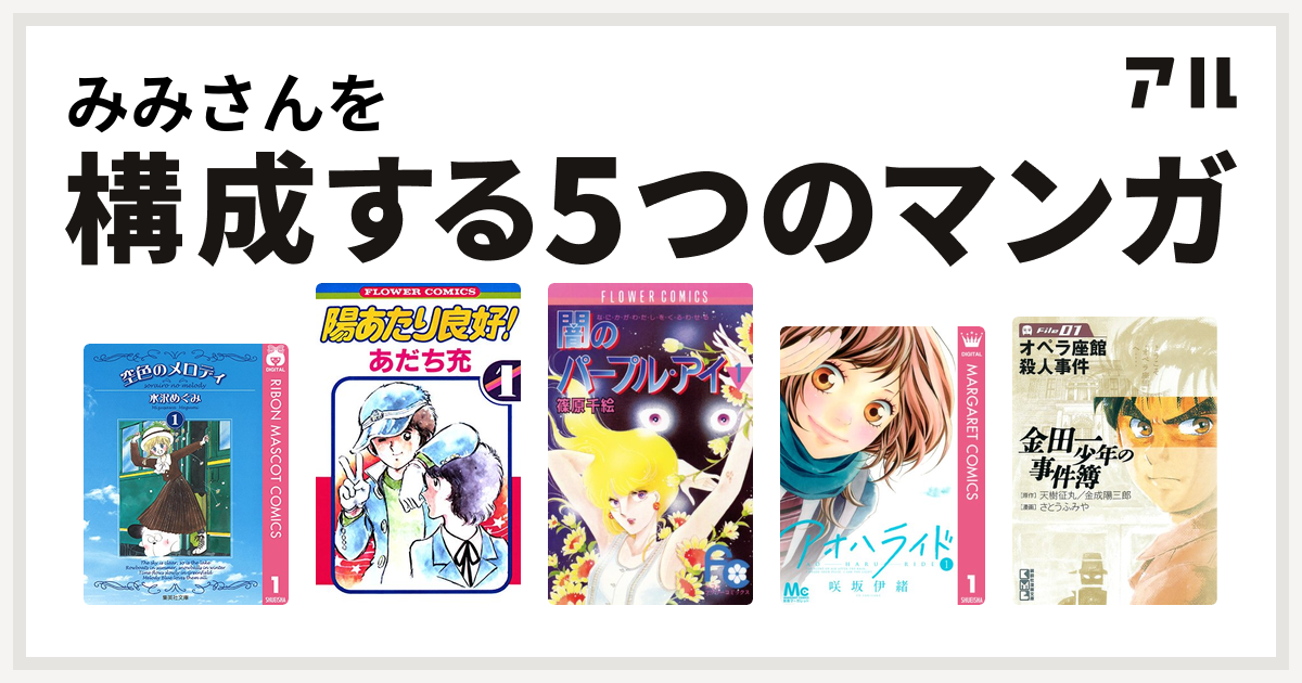 みみさんを構成するマンガは空色のメロディ 陽あたり良好 闇のパープル アイ アオハライド 金田一少年の事件簿 File 私を構成する5つのマンガ アル